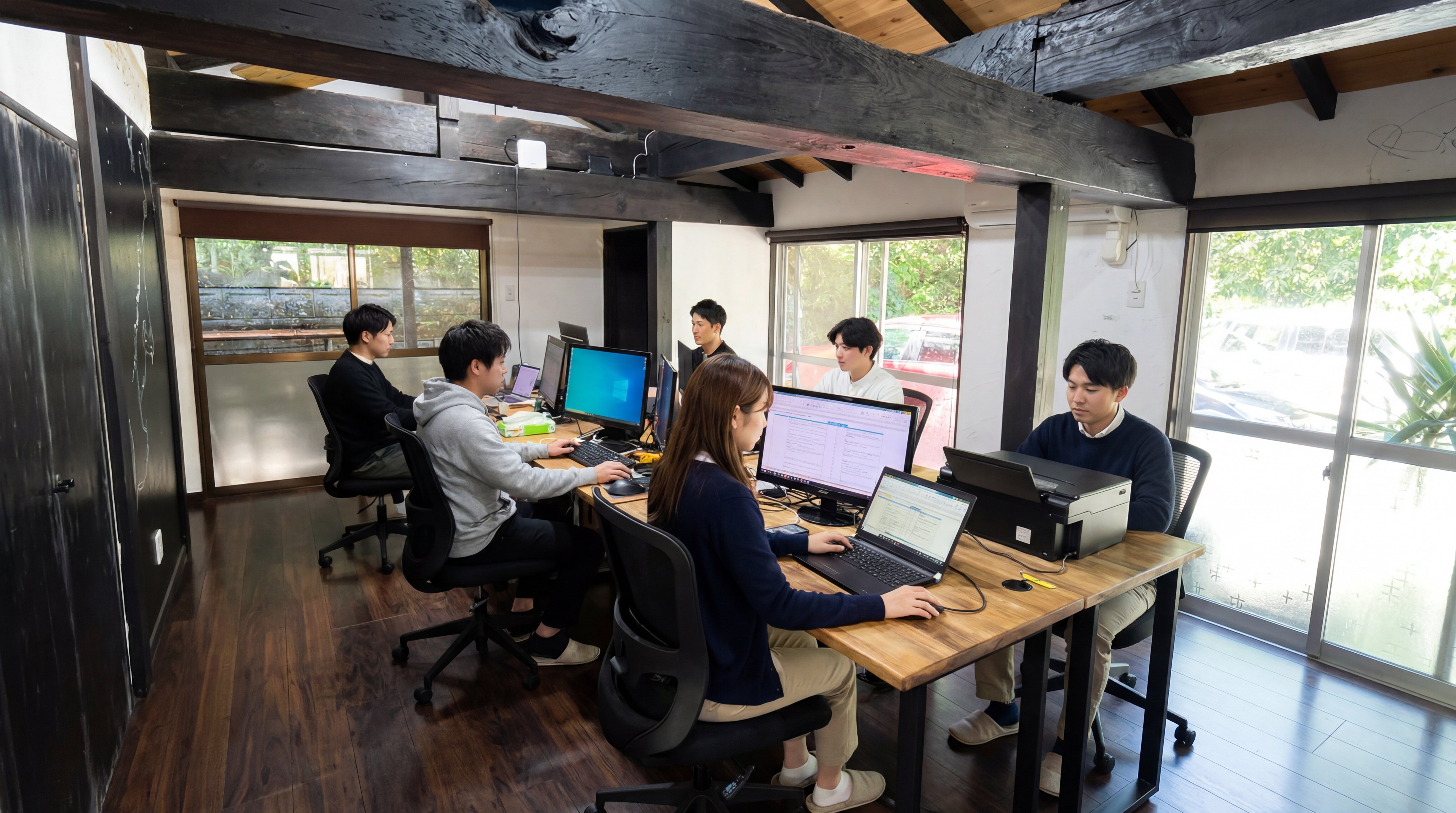 エメラルドグリーンの海、白い砂浜、豊かな自然に囲まれた環境で、リモートワークとオフィス勤務を組み合わせた柔軟な働き方が可能です。都会の喧騒から離れて、集中して仕事に取り組める環境を提供しています。