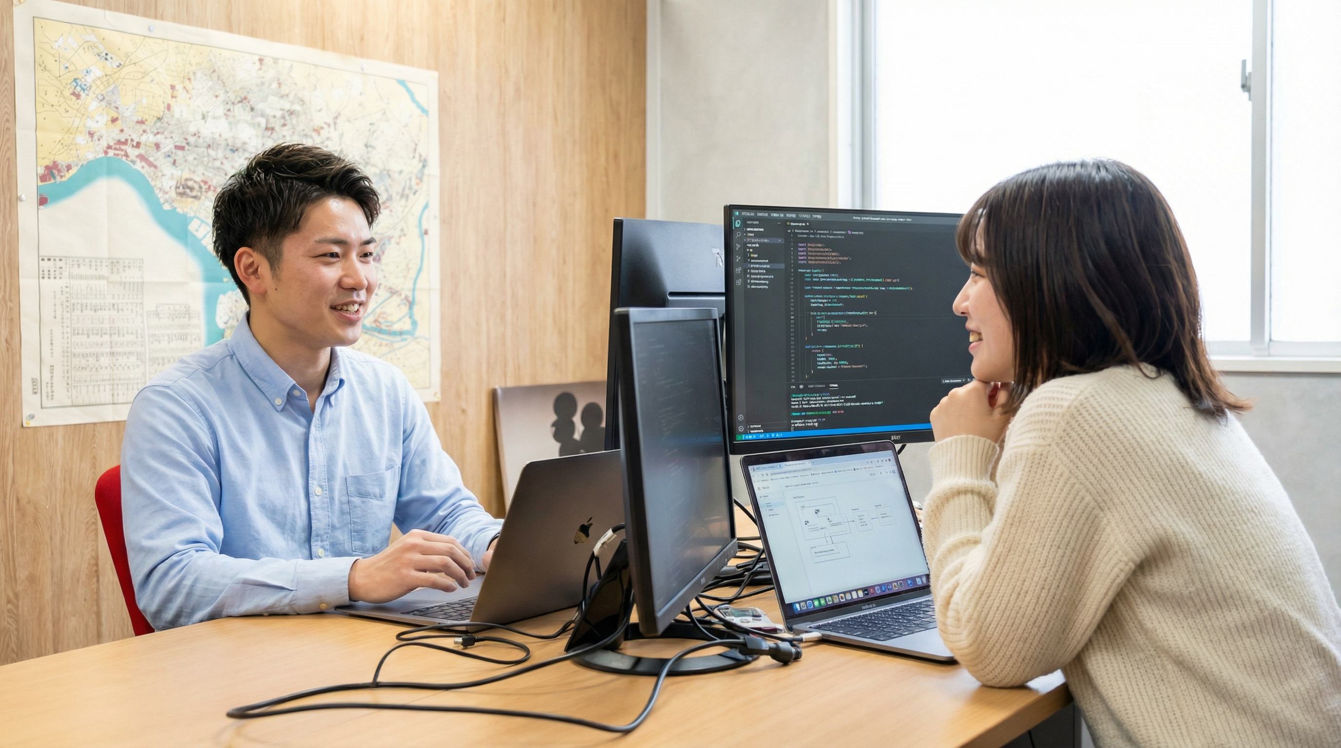 互いを尊重し、相談しやすい空気があります。上下関係なく意見を言い合える環境で、困ったことがあればすぐに相談できます。