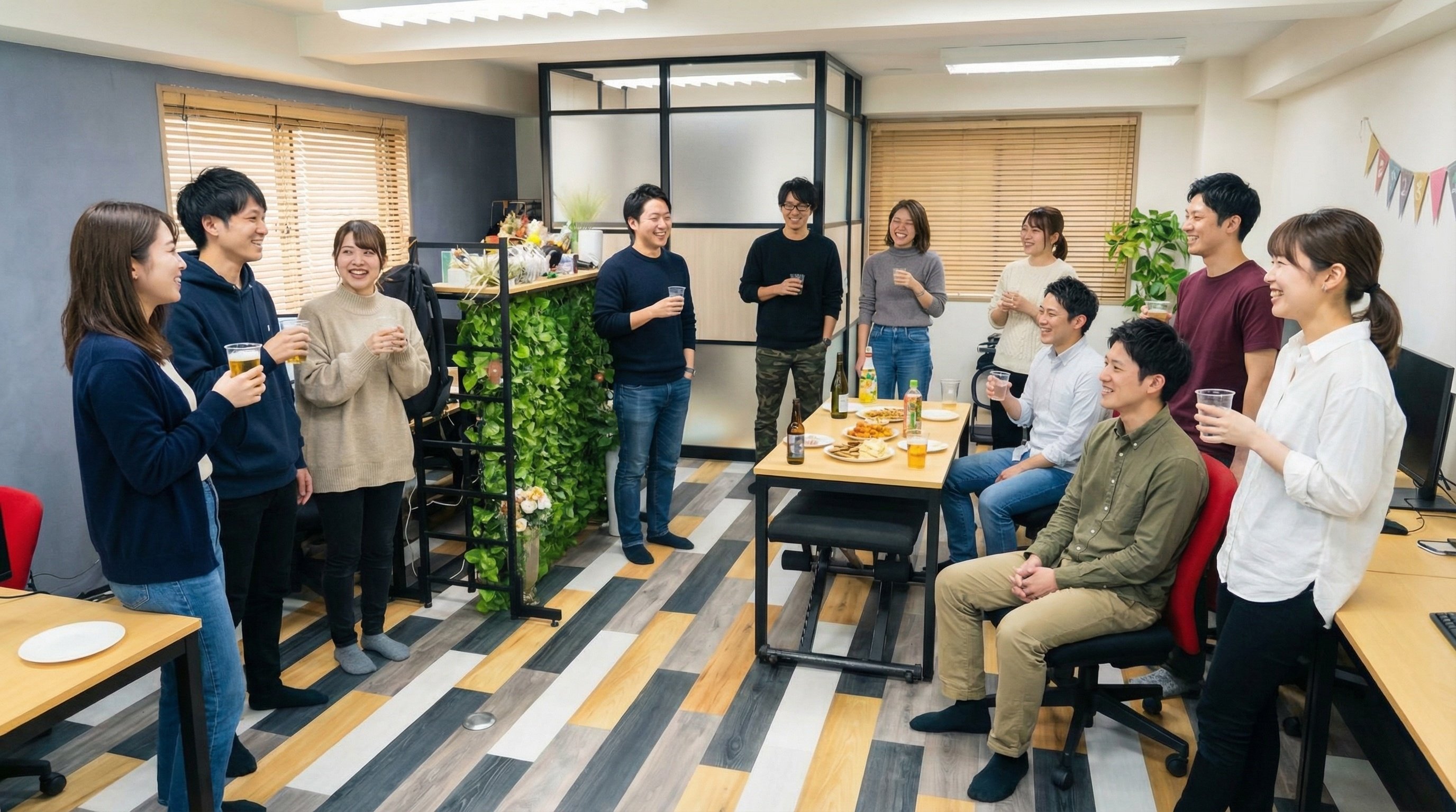 基本先輩方と同じ案件に配属され、困った時にすぐ聞ける環境で安心です。週次ミーティングで意見を出し合ったり、自社をDIYして筋トレスペースやゲームなどを設置し、楽しみながら働ける環境も作っています。